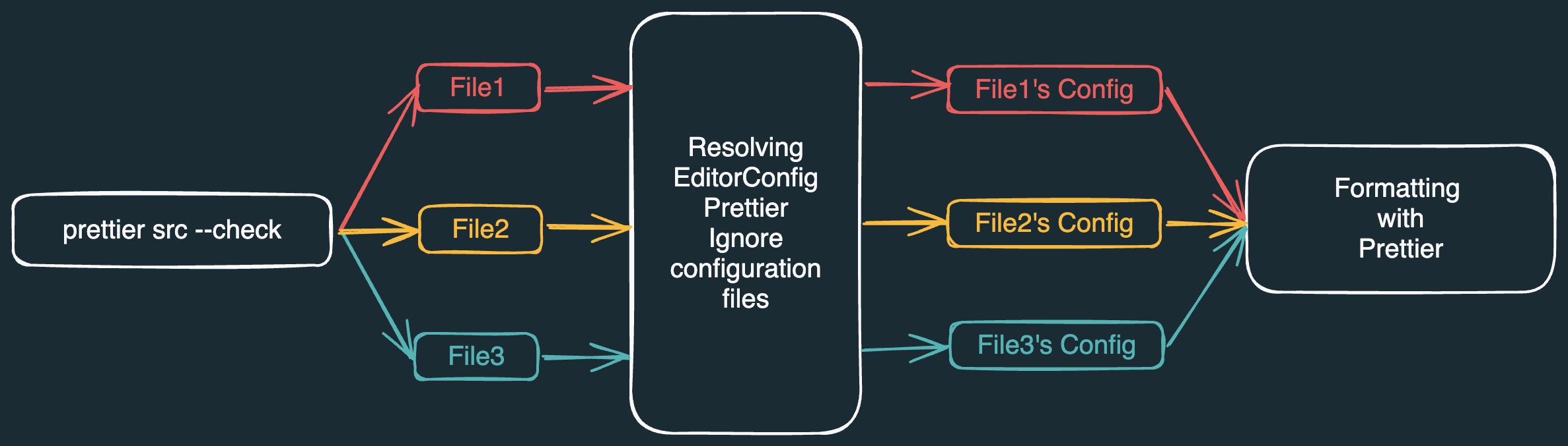For Prettier-specific configurations, like the .prettierrc file, we are also assuming that we've resolved all the found configuration files, and can retrieve them in constant time for any target file.